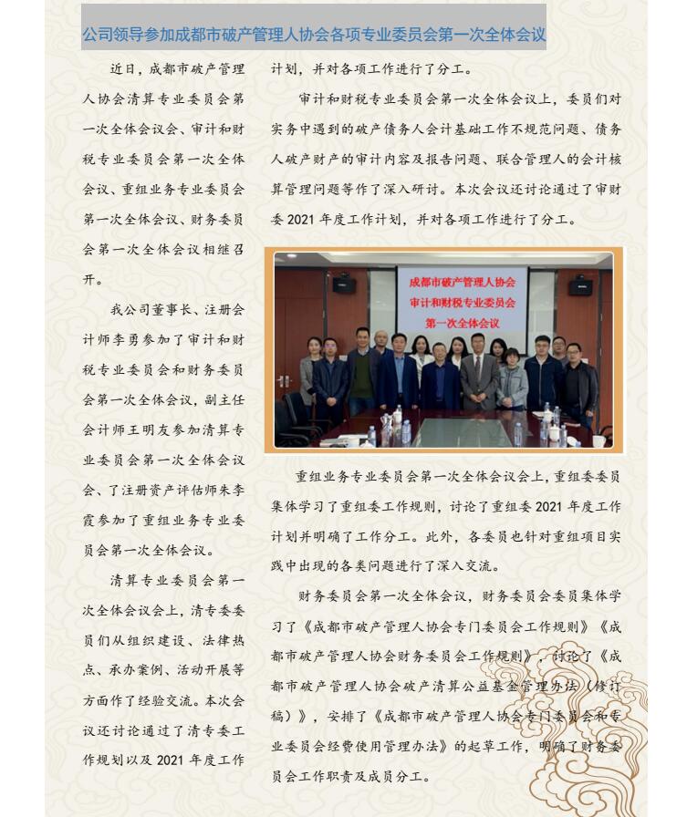 公司領(lǐng)導(dǎo)參加成都市破產(chǎn)管理人協(xié)會(huì)各項(xiàng)專業(yè)委員會(huì)第一次全體會(huì)議