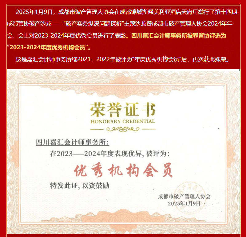 喜報||嘉匯會所連續(xù)三年榮獲蓉管協(xié)“年度優(yōu)秀機(jī)構(gòu)會員”