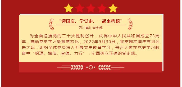 四川嘉匯黨支部“喜迎二十大、奮進新征程”系列文化活動之“迎國慶、學黨史、一起來答題” 黨建活動