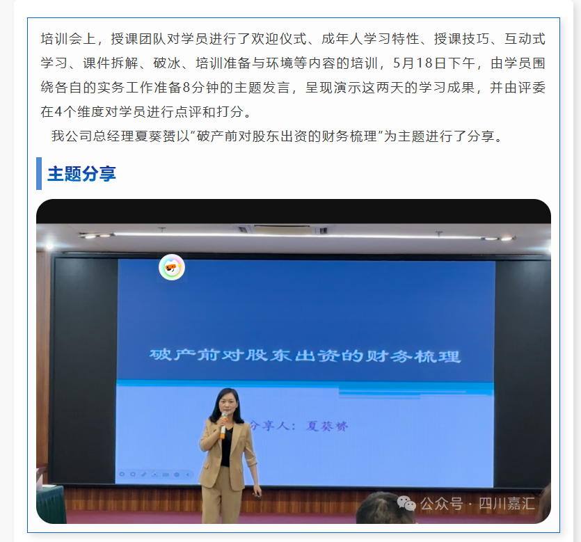 嘉匯會(huì)計(jì)所總經(jīng)理夏葵赟參加“企業(yè)全生命周期·普法講師”公益培訓(xùn),被聘任為“破產(chǎn)法律援助志愿隊(duì)隊(duì)員”