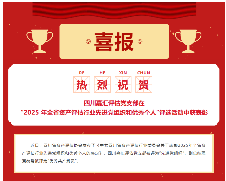喜報||嘉匯評估黨支部在 “2025 年全省資產評估行業(yè)先進黨組織和優(yōu)秀個人”評選活動中獲表彰